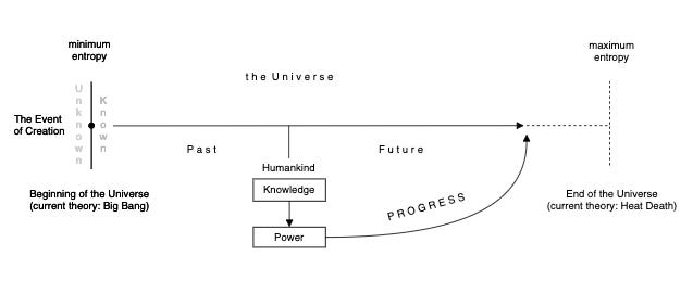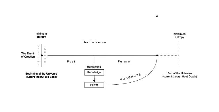 So, we have progressed in the past and the Universe will end in the future. After much reading, research, and existential rumination, I will try in this essay to describe an answer to this reality-shaking problem and, if I may be so bold (I am), solve some fundamental questions about Existence.